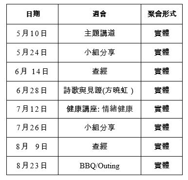 Note:  其間會有在zoom 聚會、詳情請直接電郵elim@logosbaptist.org